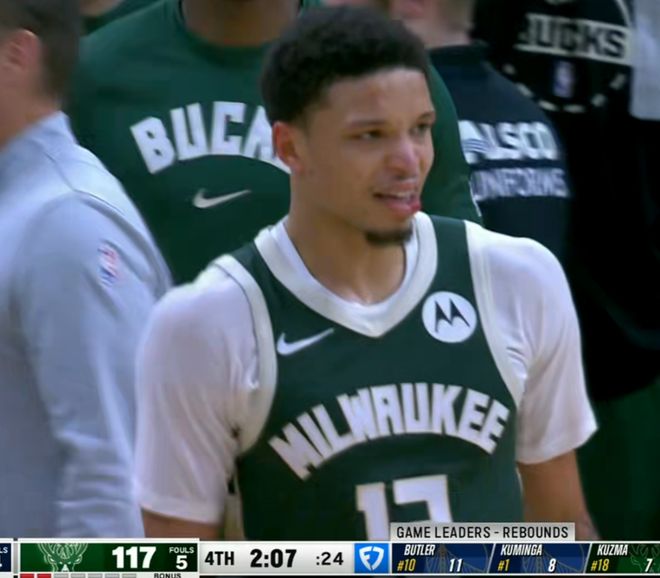 最后24.8秒,罗林斯更是顶着巴特勒的防守,用库里的绝招横移三分杀死了对手,赛后所有人都在和他撞胸击掌庆祝,都看呆了。之前他打得已经很好了,但是我们也没想到这场没有字母哥的情况下,罗林斯能这么强。